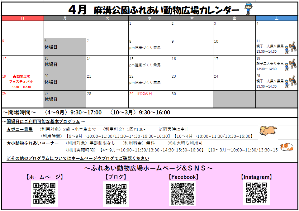 ポニー乗馬ご利用時間変更のお知らせ