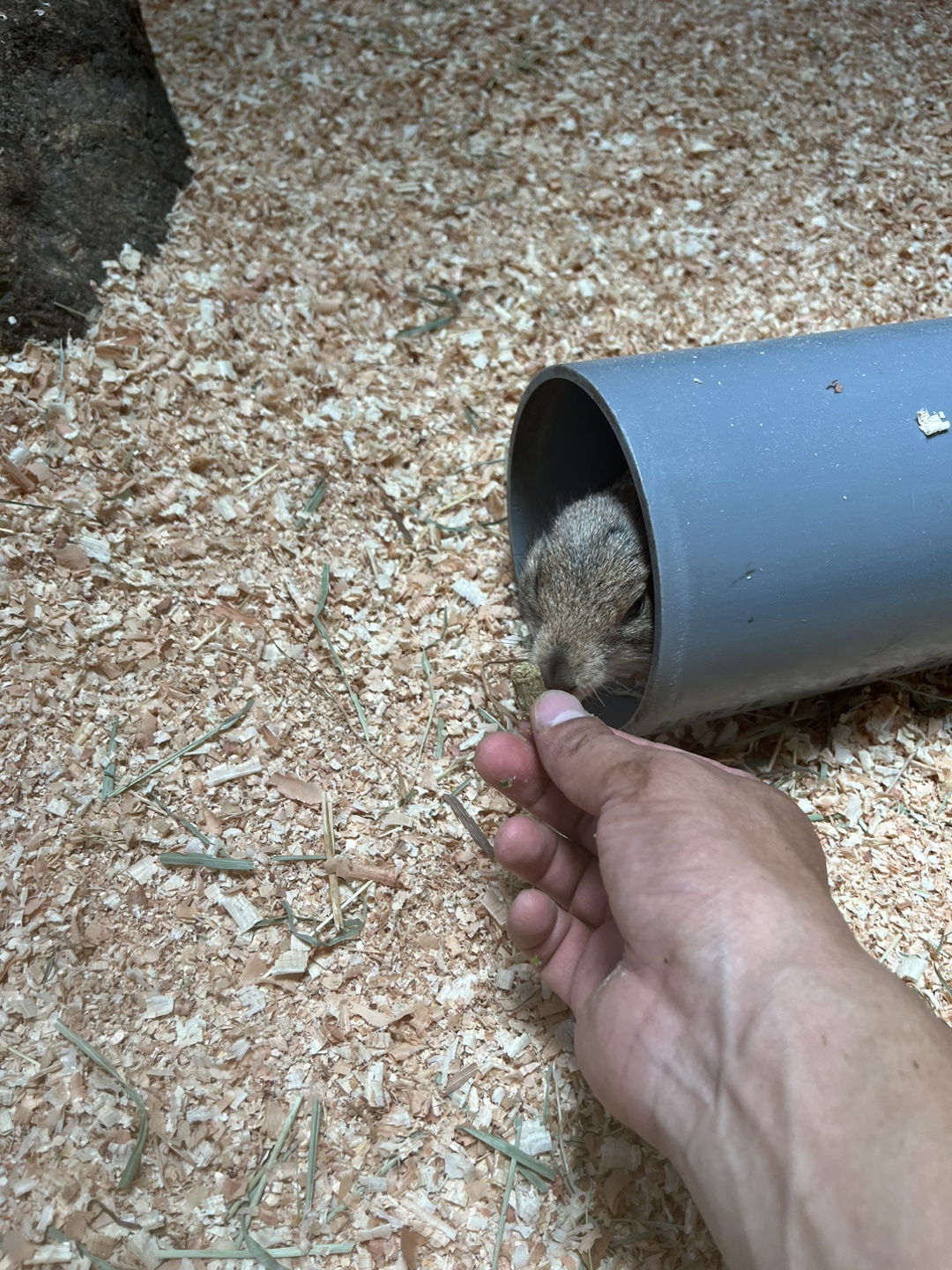 プレーリードッグは警戒心が強く、人がお部屋の中に入ると筒の中に隠れてしまいます!