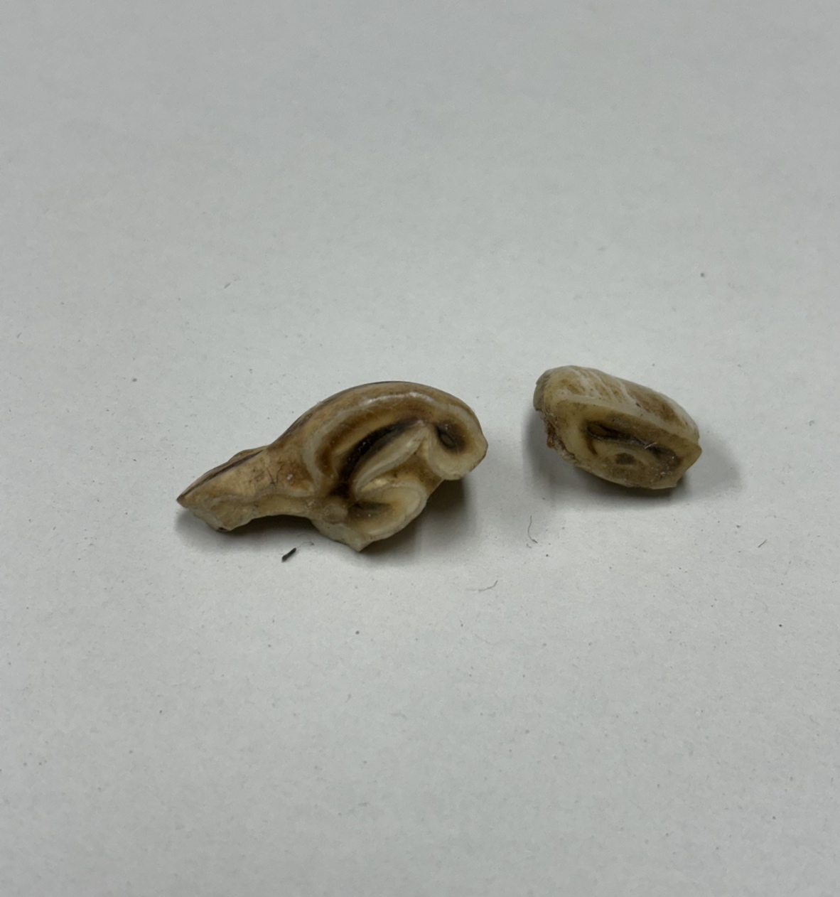 以前、広場のSNSでもあげさせていただいたヤギの乳歯と同じように、発見出来たらラッキーな馬の乳歯がこちら!