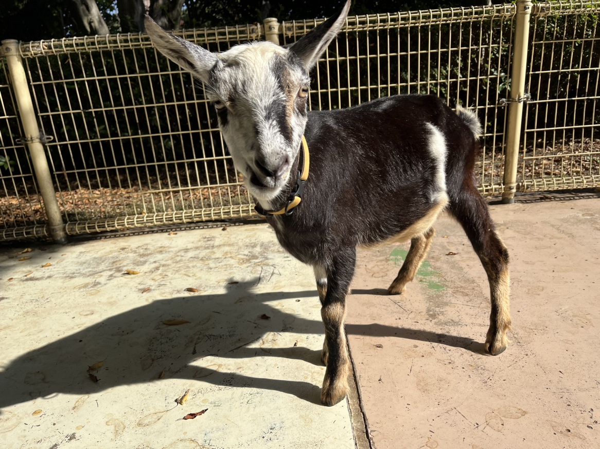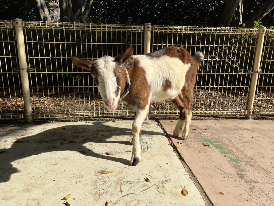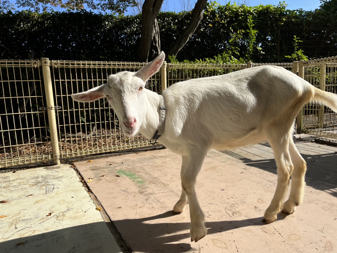 すごく臆病な性格なので、他のヤギに隠れていることが多いですが、待ってあげると近寄ってくるかも!