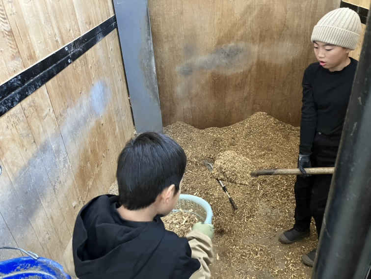 午前中は馬小屋のお掃除