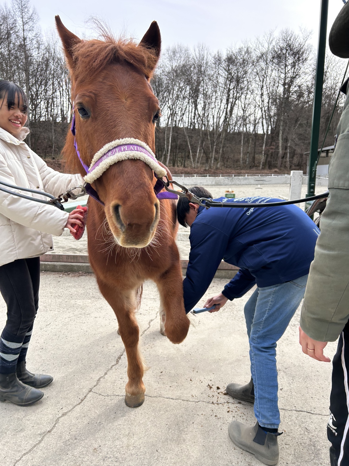乗馬が終わった後はありがとうの気持ちを込めて手入れをしてあげました