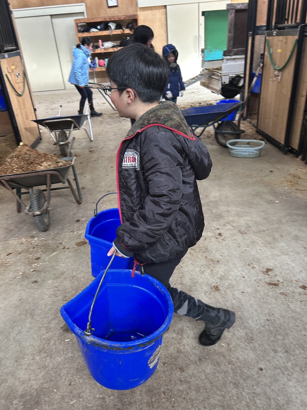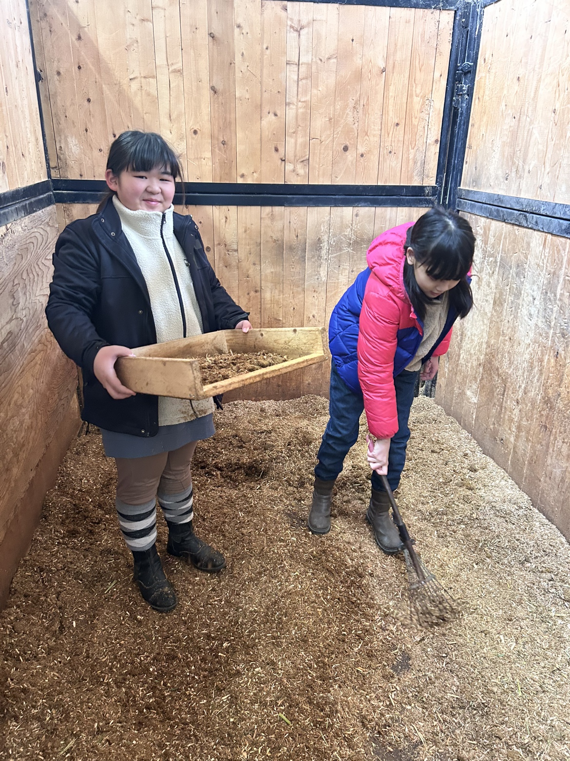 馬房掃除をして今日もポニトレ頑張ります!