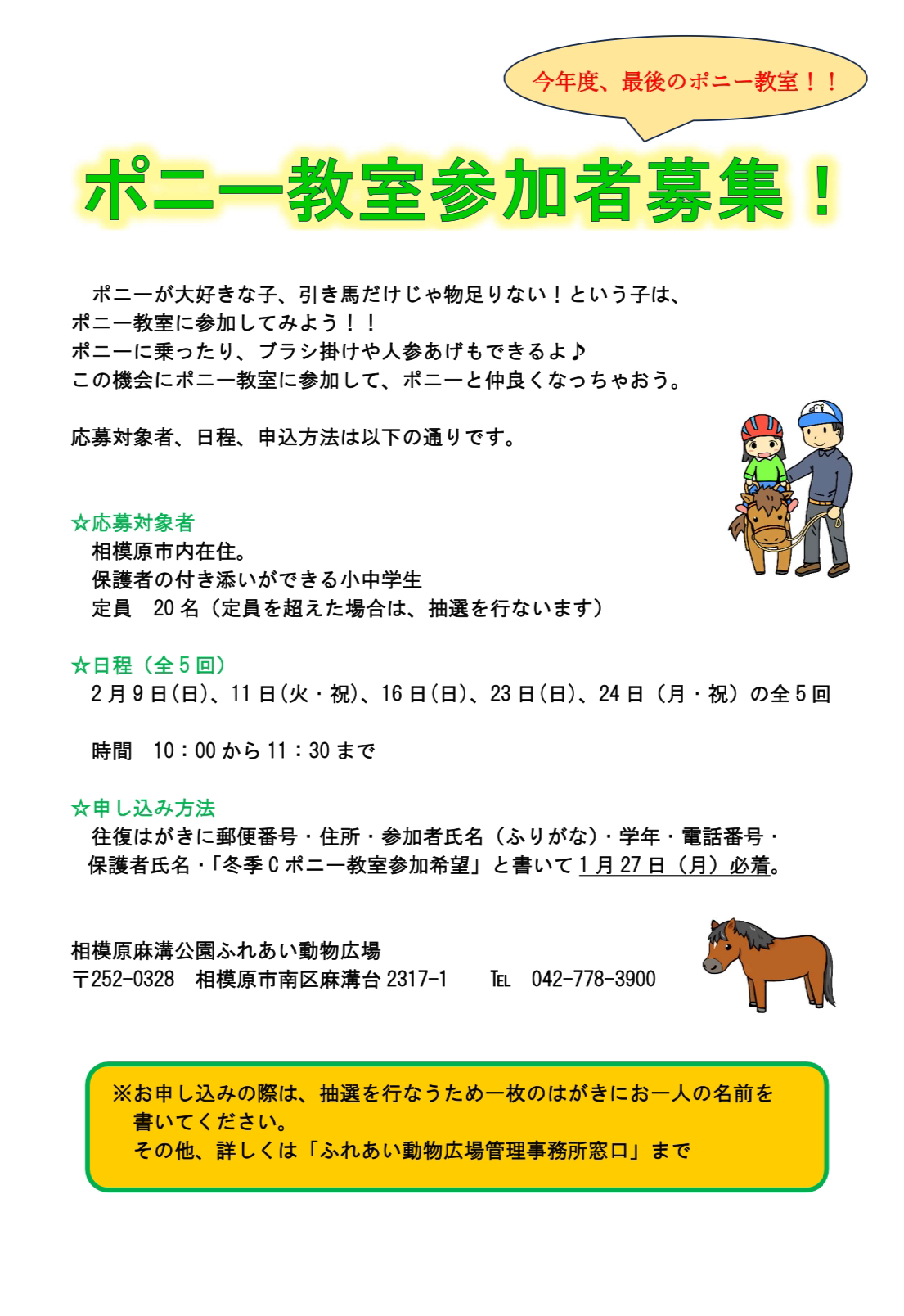 投稿 冬季Cポニー教室 参加者募集のお知らせ!!〔相模原市在住 小中学生限定〕 は 公益財団法人ハーモニィセンター に最初に表示されました。
