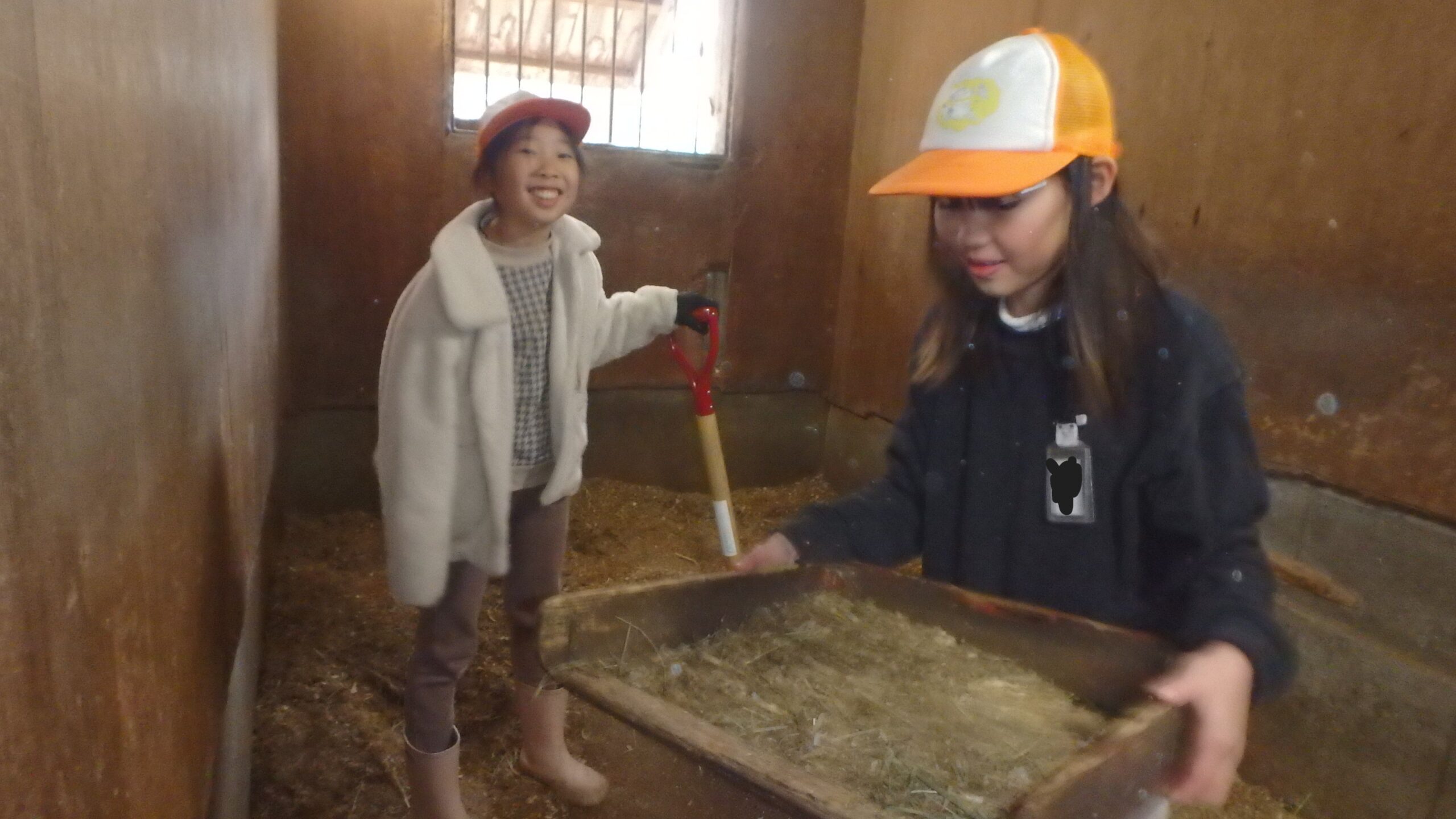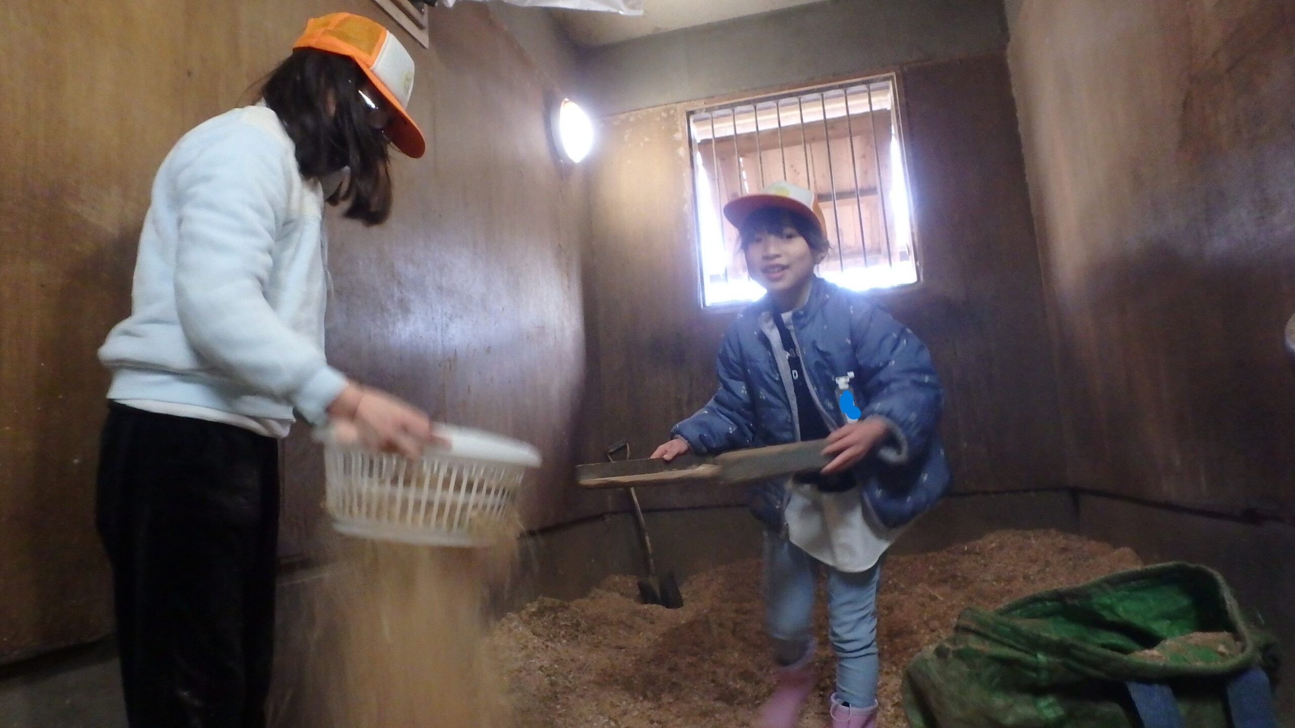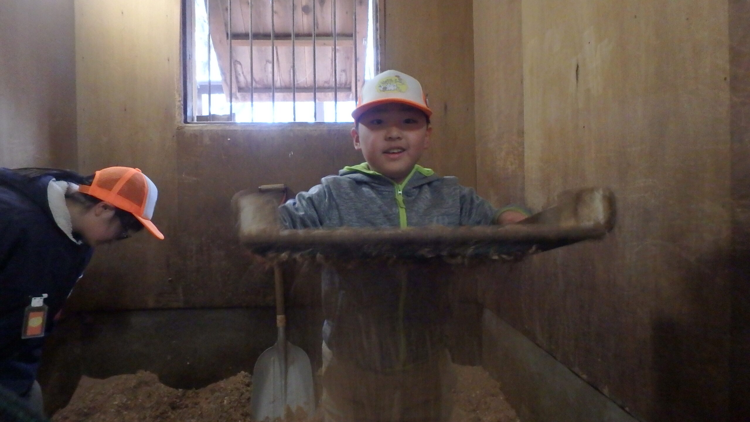 午後は、ポニーの馬房(お部屋)掃除をしました!
