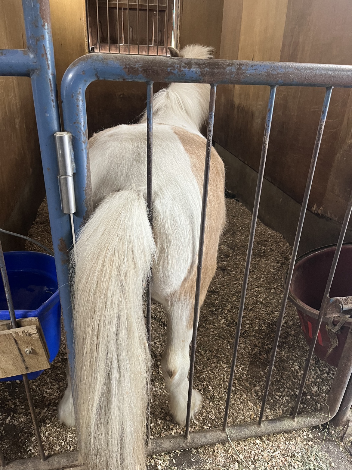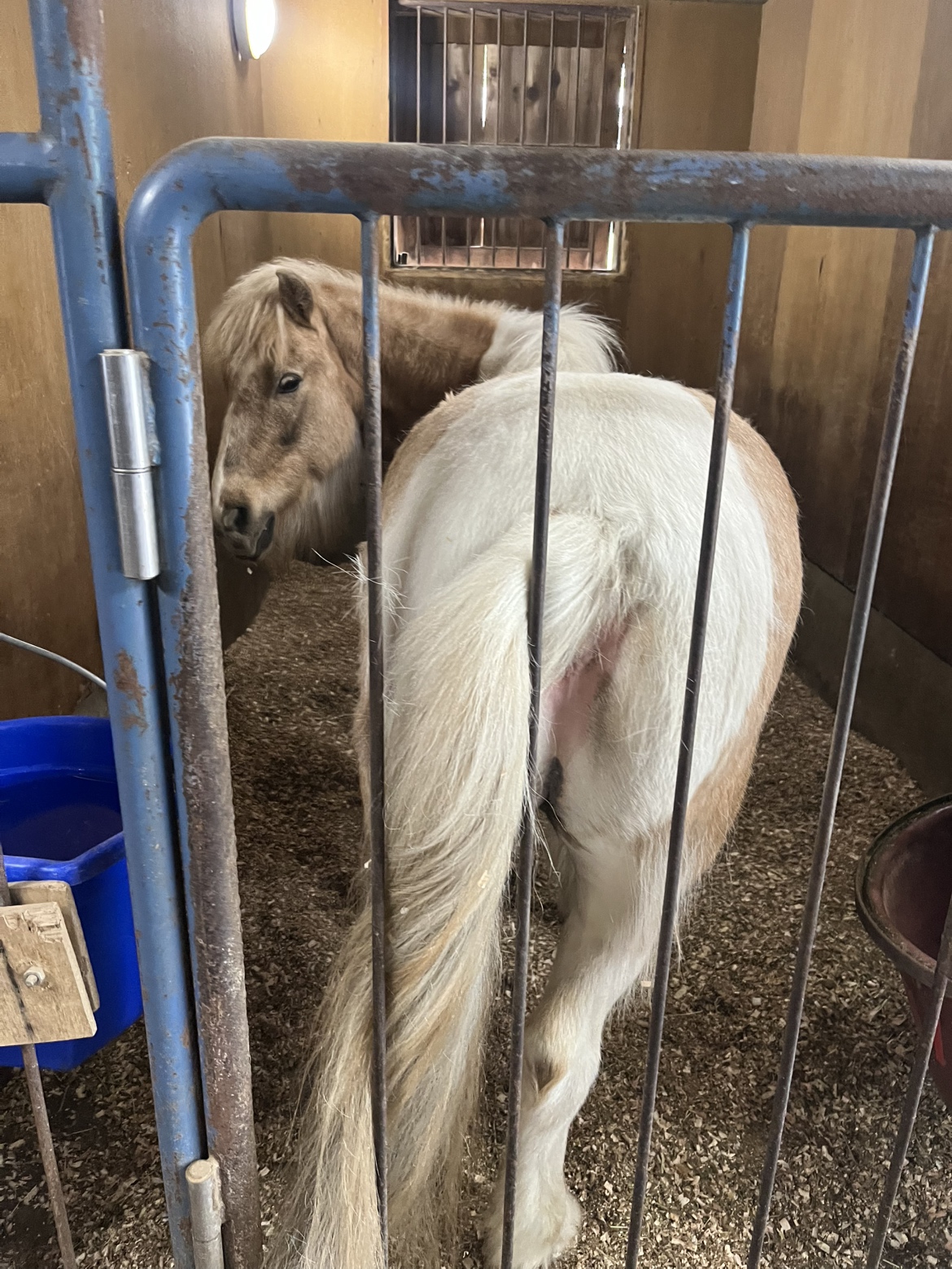 ポニーさんは人間のように手がないので、柵や柱を使ったり、歯を使って痒い所を掻いています。