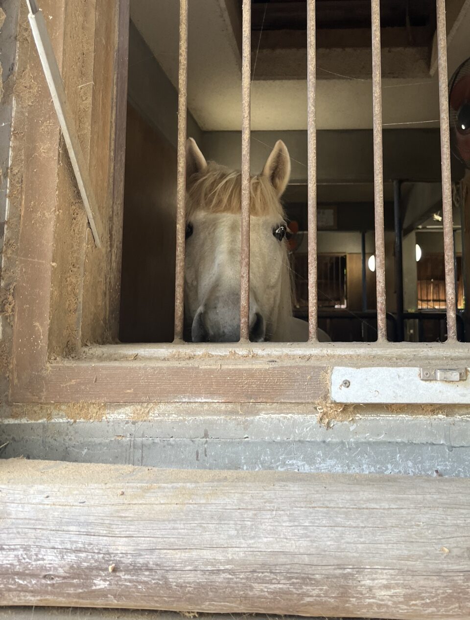 白色の大きいポニーのリオくん!!カメラに少しビックリしていました!!