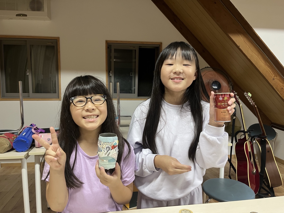 昨晩は、お夕飯を頂いたあと、みんなで花火づくりとペン立て作りをしました!