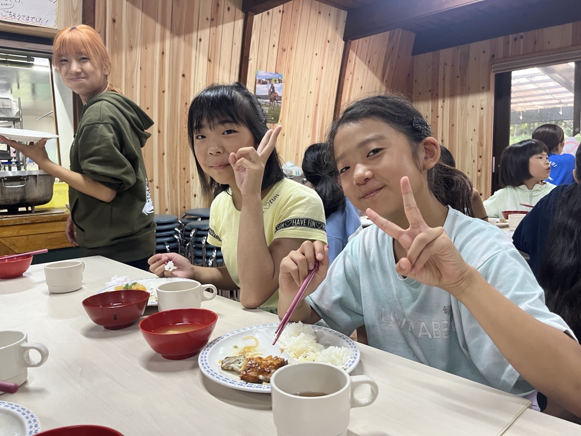 馬に朝ごはんをあげてから、自分たちも朝ごはんをたくさん食べました