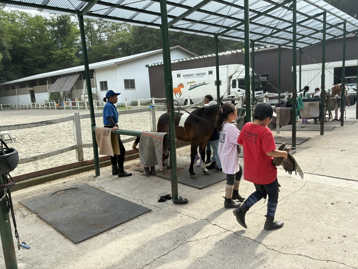 「3日間ありがとう!」と、丁寧に手入れと片付けをし、馬を馬房に返しました