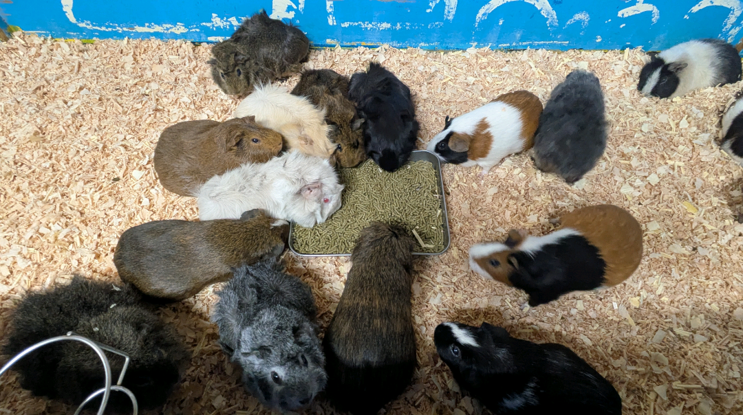 モルモットたちはたくさんご飯を食べて元気いっぱいです