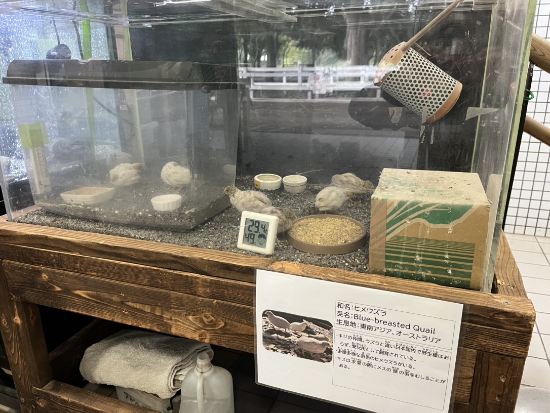 管理事務所棟入口のところに9月に生まれたばかりのヒメウズラがいます!!