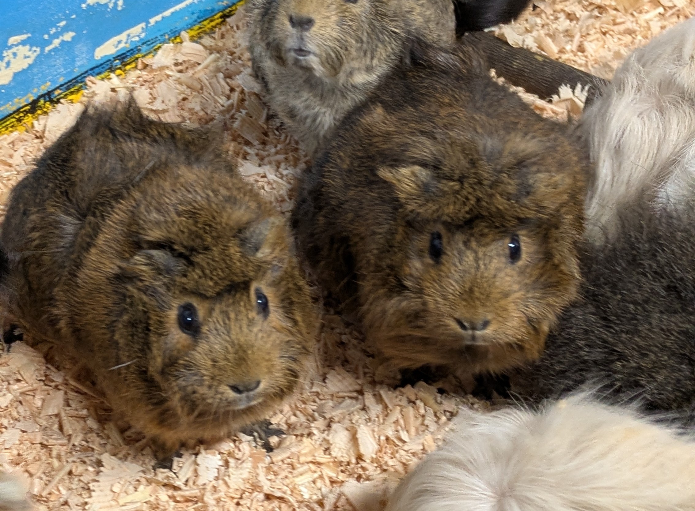 ふれあいコーナーには、たくさんのモルモットが生活していますが、その中には兄弟ではないのにとてもそっくりなモルモットがいるんです!