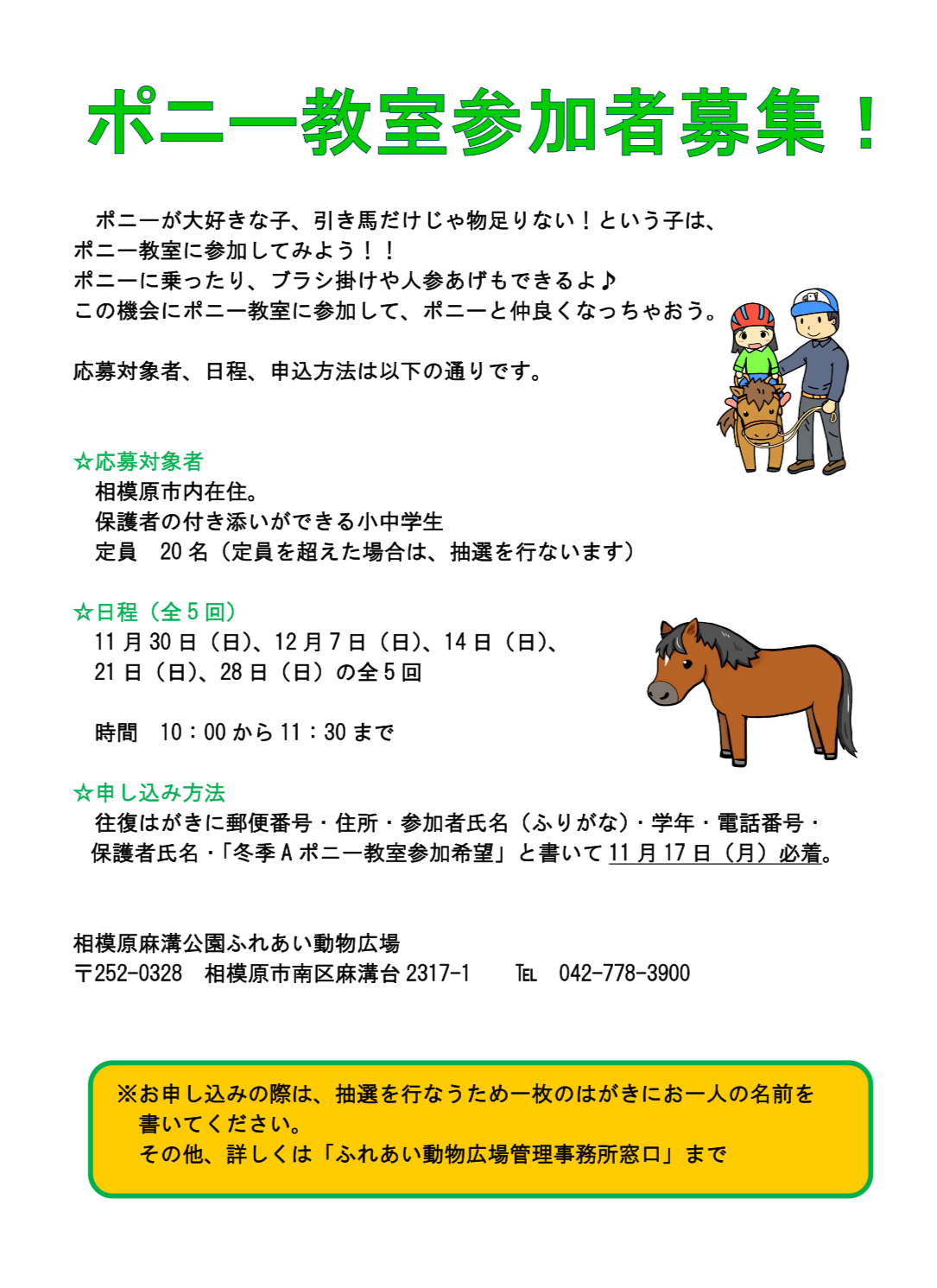 相模原市内在住の小学生・中学生を対象とした、ポニー教室のお誘いになります!!