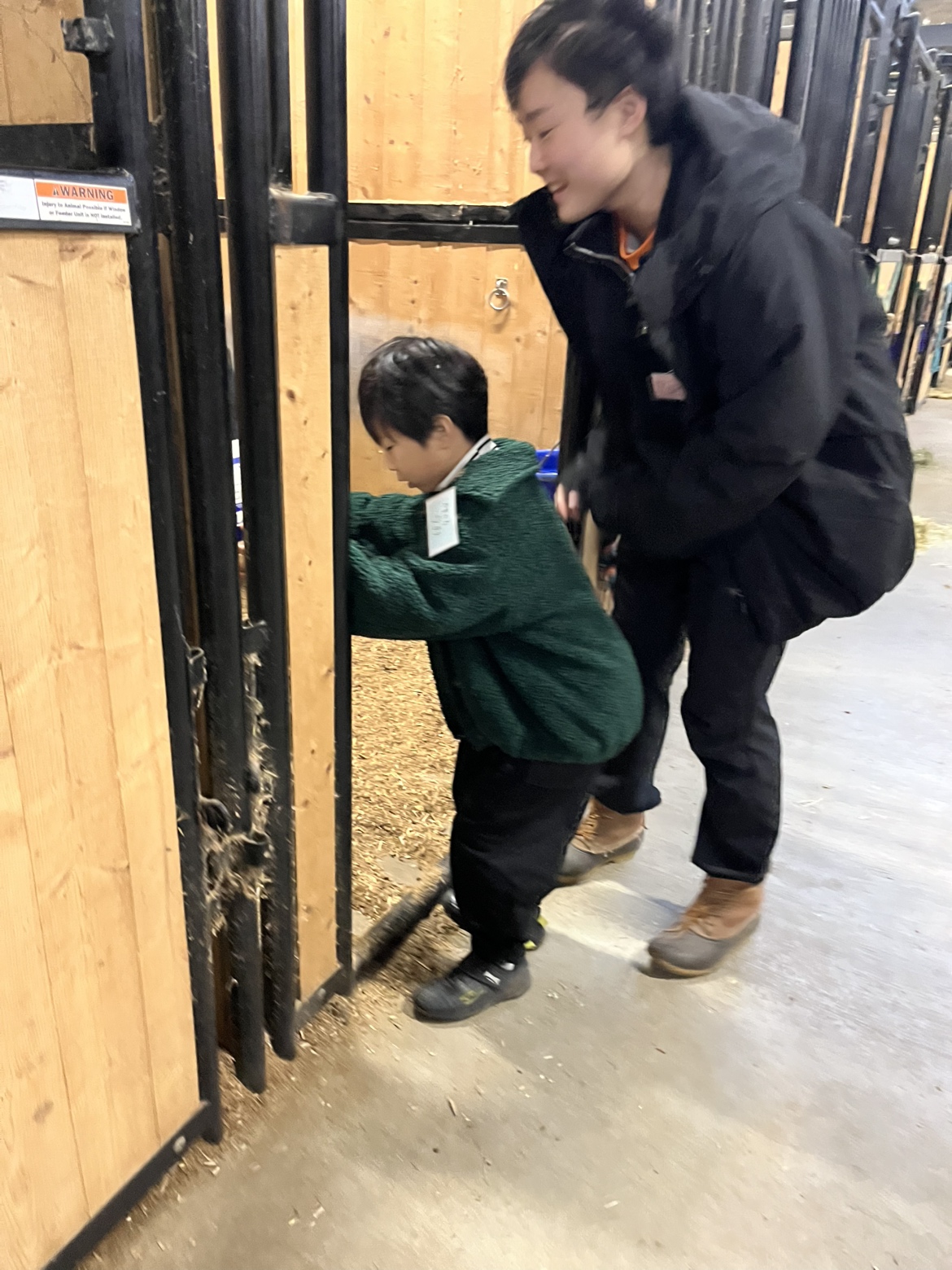 初めて馬とのご対面で子供たちは馬の顔と名前を覚えるのに必死です!
