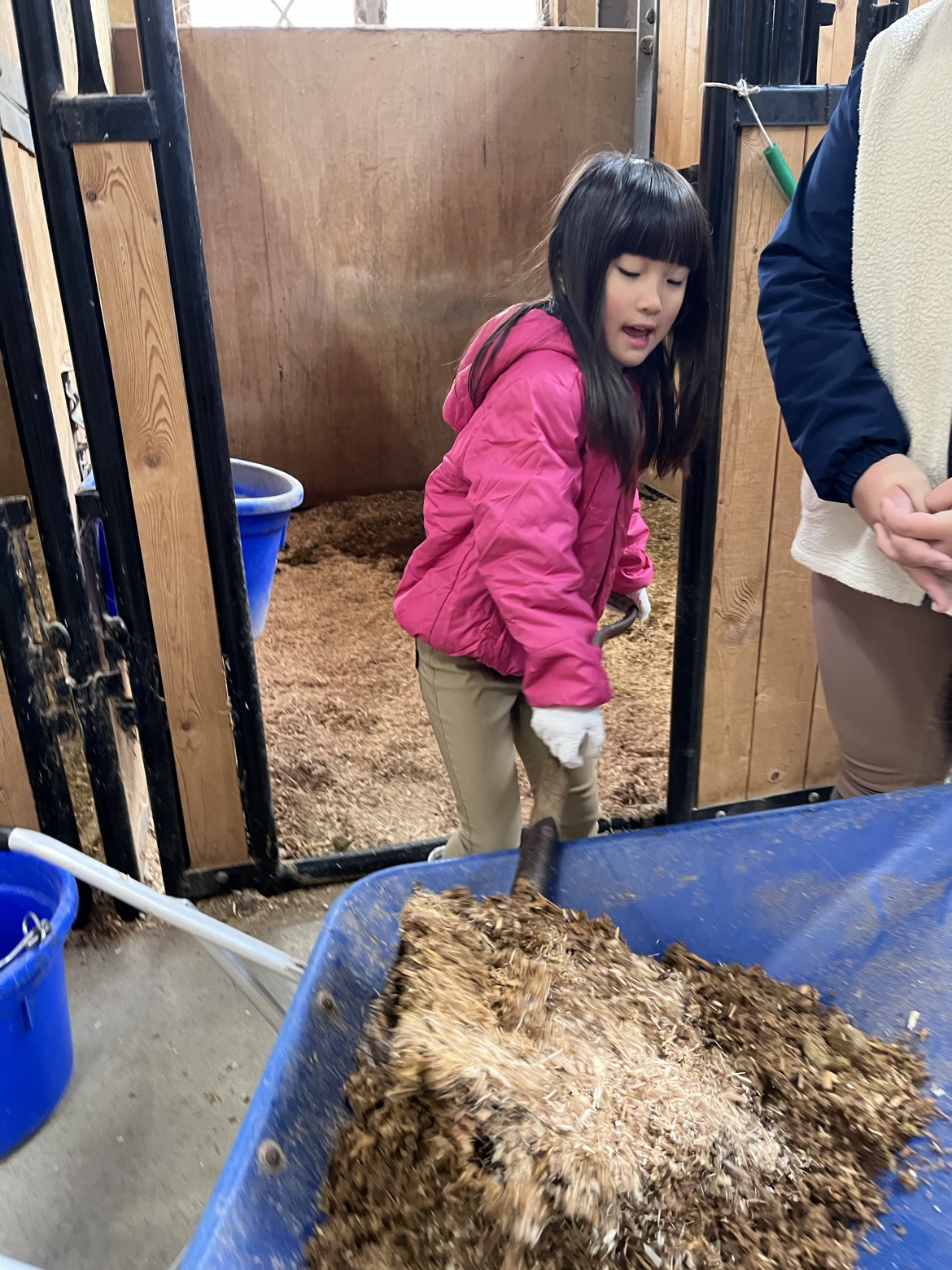 朝ごはんを食べたら、次は馬小屋の掃除です!