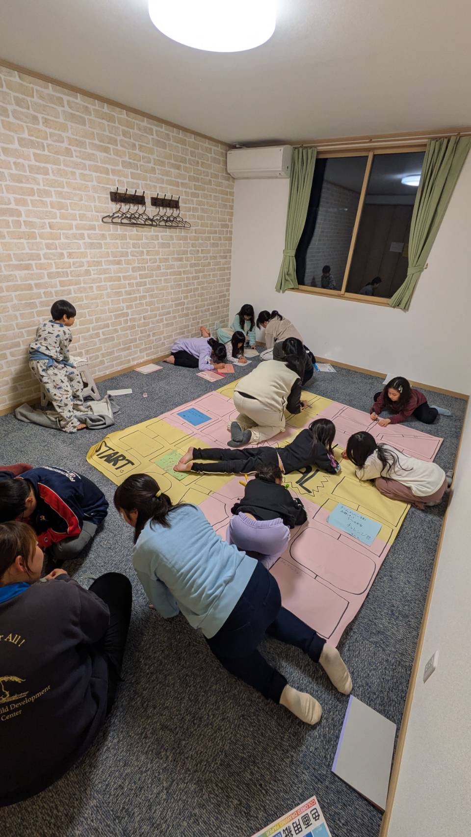 チームで協力をして、子供たちでミッション決めをしてから、自分たちで作成したすごろくで遊びました!!なかなかの力作です(笑)