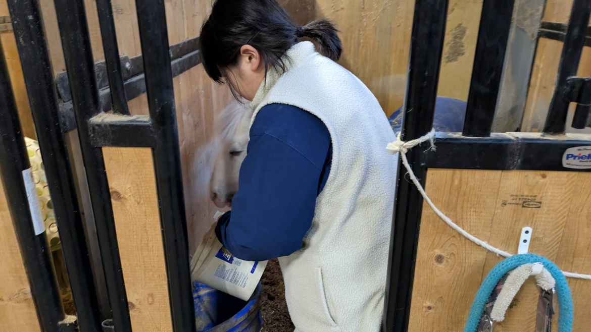 最終日も朝起きたら、まずは馬に餌をあげにいきます!初めは怖がっていた子も、少し慣れて1人であげられるように