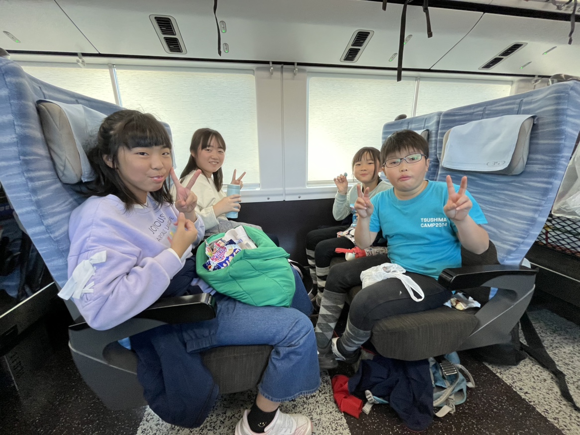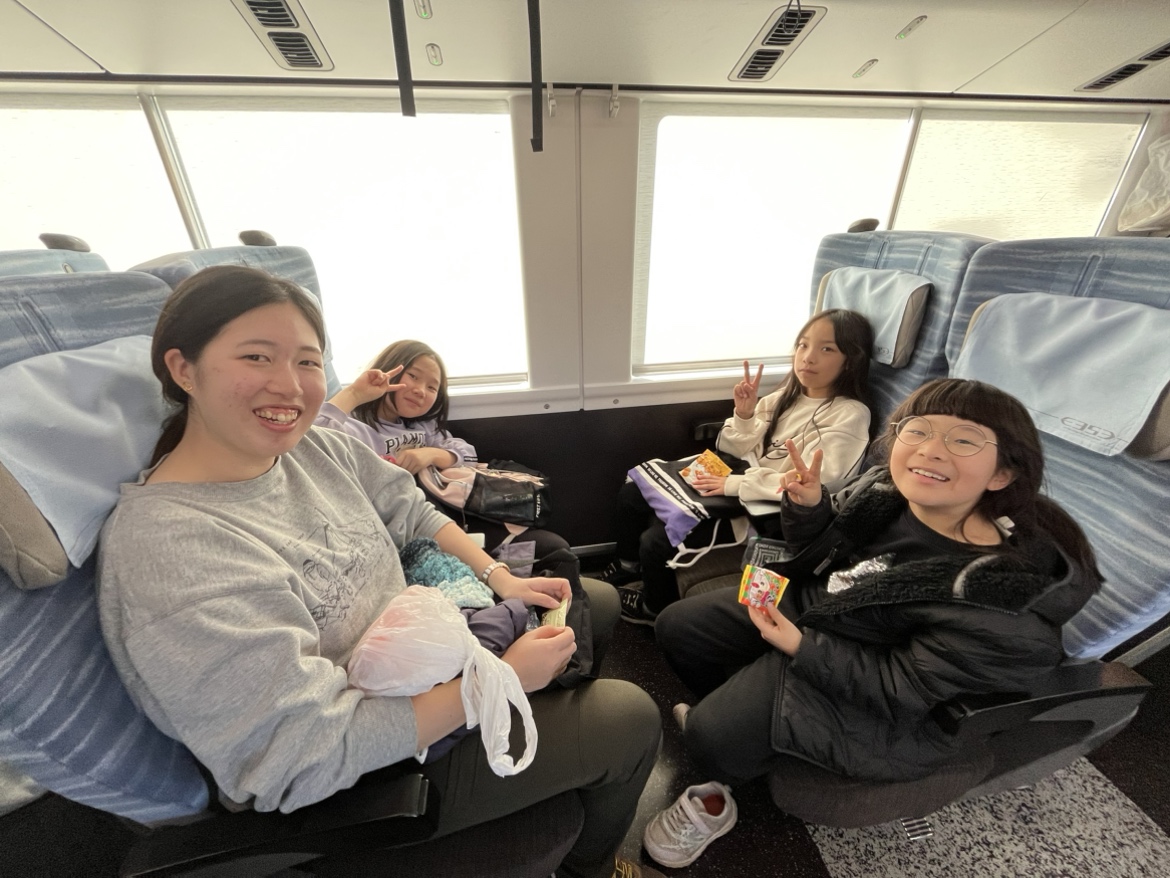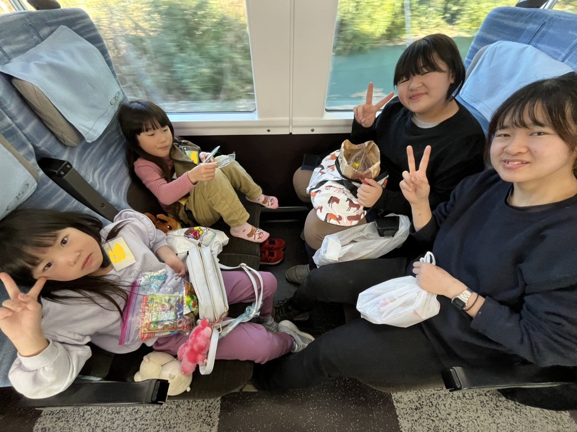 電車に乗ってからすぐ、子供たちはお菓子タイム