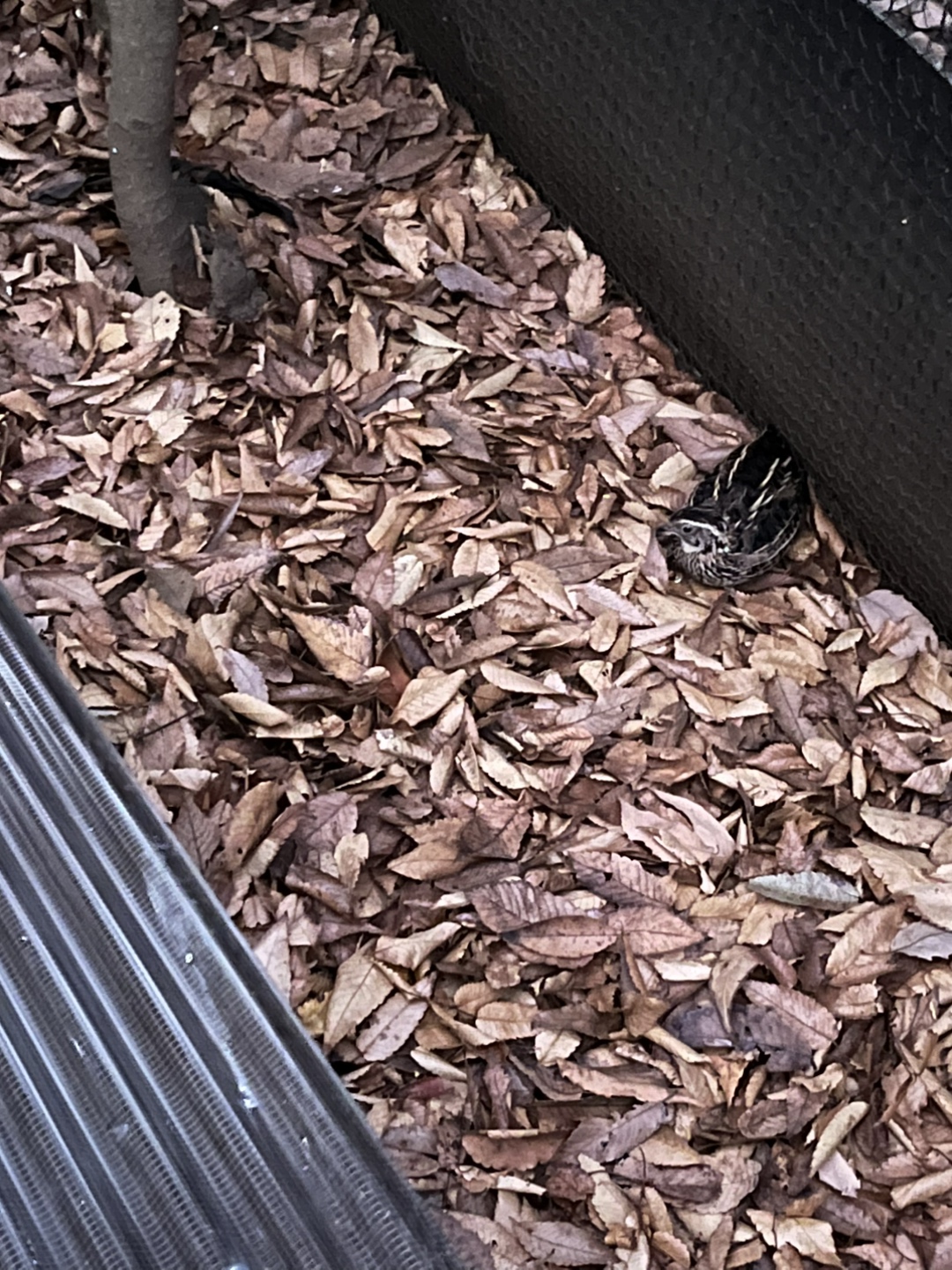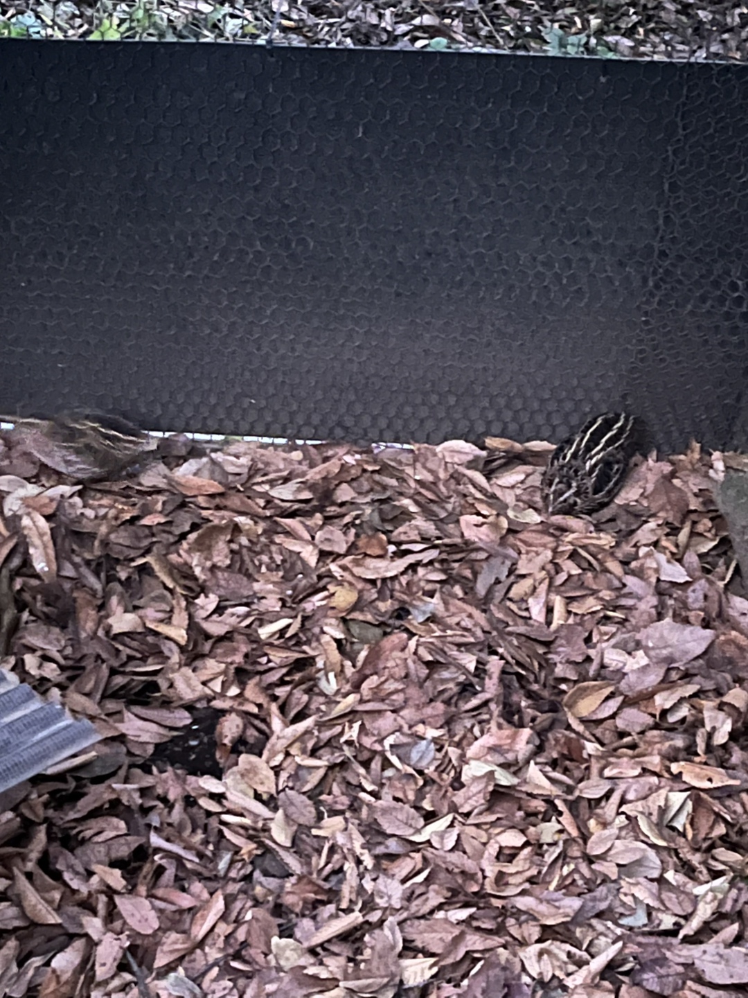 冬の間はバードケージに落ち葉を敷いているので、うずらさんが隠れているかもしれません