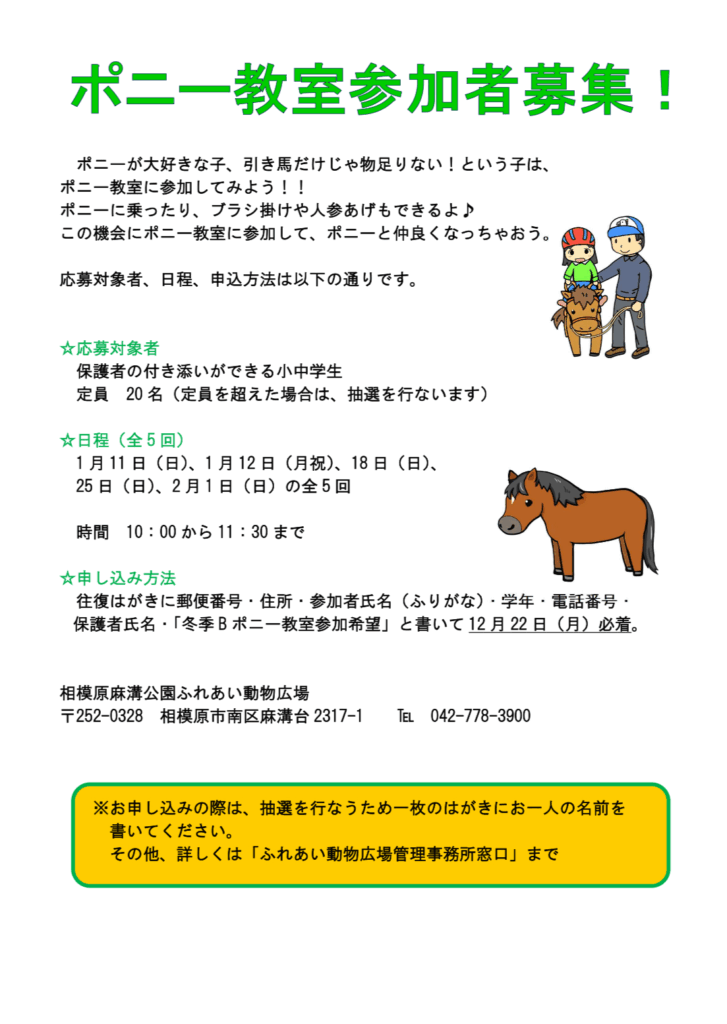 冬季Bポニー教室 参加者募集のお知らせ!!《小中学生限定》